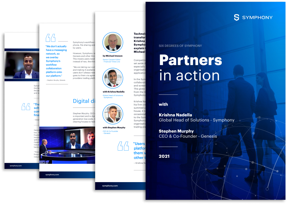 Learn how the Symphony’s workflow collaboration platform – embracing chat, video, phone, file sharing and screen sharing — is embedded into the Genesis’s platform. Giving clients the ability to access Symphony’s services directly from the Genesis.