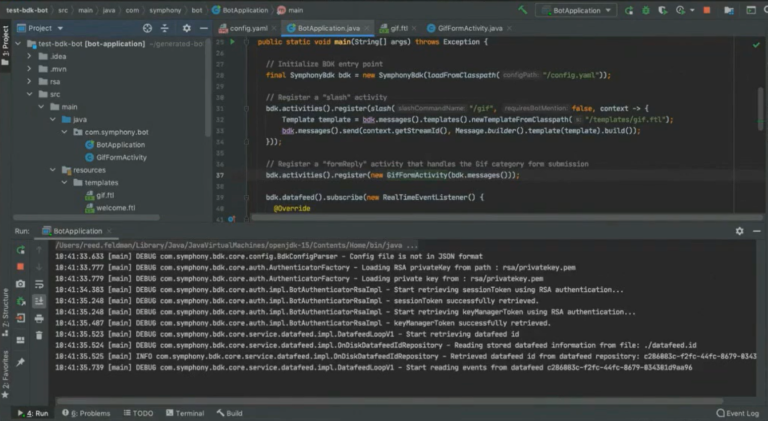 At the dawn of 2021, Symphony launched a new version of its Bot Developer Kit, the BDK 2.0. This toolkit provides the same support as Symphony’s existing SDKs for basic features such as datafeed handling and API bindings but simplifies many aspects like configuration, authentication, real-time events, and message templating. It also includes new advanced features like the Activities API as well as optional framework integration for Spring Boot developers.