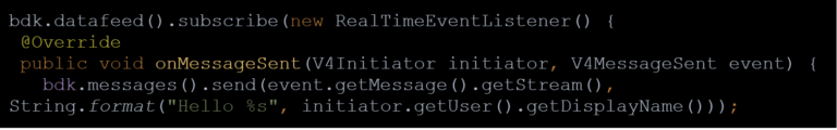 The BDK 2.0 makes it super easy to add custom business logic to your bot through RealTimeEventListeners. All a RealTimeEventListener is, is a custom class that listens for incoming events from the datafeed. Inside of these event listeners is where the bulk of your bot’s business logic will live.