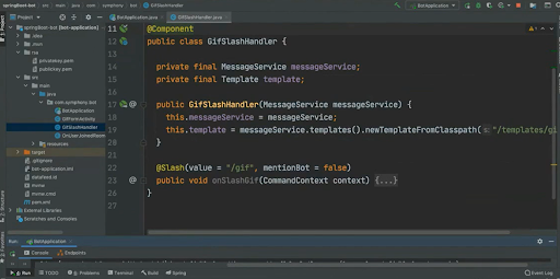 To leverage the SpringBoot Integration, it’s easiest to start from the Symphony Bot Generator and choose ‘SpringBoot’ as your framework of choice.