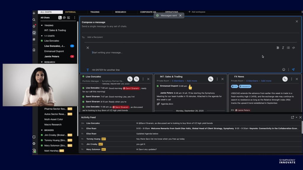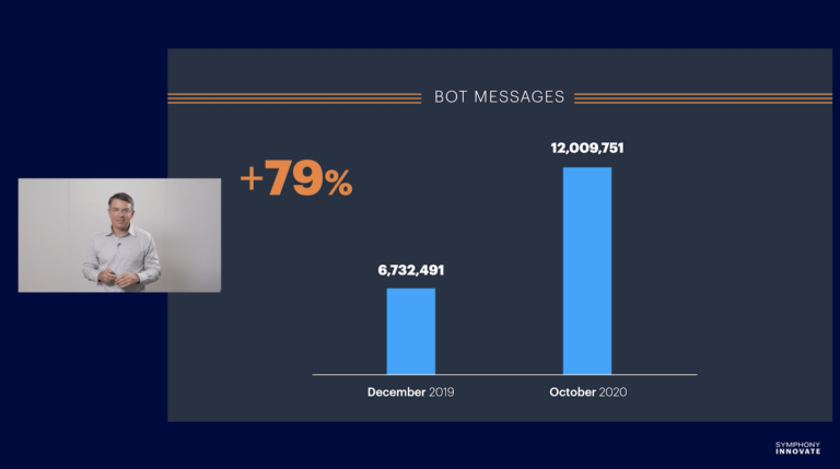 Back in April, we hosted our first-ever fully digital Innovate event while much of the world was still in lockdown. In the months since, our team here at Symphony has worked (remotely!) to enhance connectivity on our platform and support our community. Last week, we gathered virtually for our second digital Innovate, where we were inspired and impressed by the resiliency and achievements of the Symphony community. Almost 1000 attendees from all over the world tuned in to see presentations from Symphony team members, demos of new products and integrations, and discussions featuring leaders from across the financial services industry.