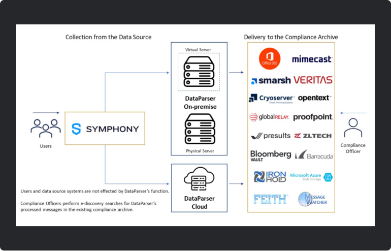 DataParser is connector software that is designed to bring Symphony into any compliance archive, storage repository, or eDiscovery system.