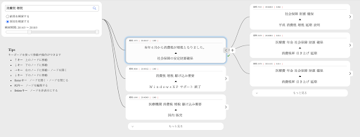 Explore the ripple effect of economic events just by entering keywords. Izumi Lab’s Causal-Chain Search app extracts keyword-related sentences from summaries of Japanese financial statements and identifies economic causal relationships, then displays the results on an interactive mind map.