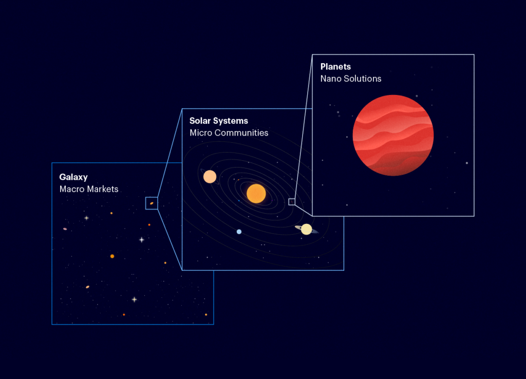 As a simple metaphor, these layers function much like the cosmos itself: the Galaxy, Solar Systems and Planets: