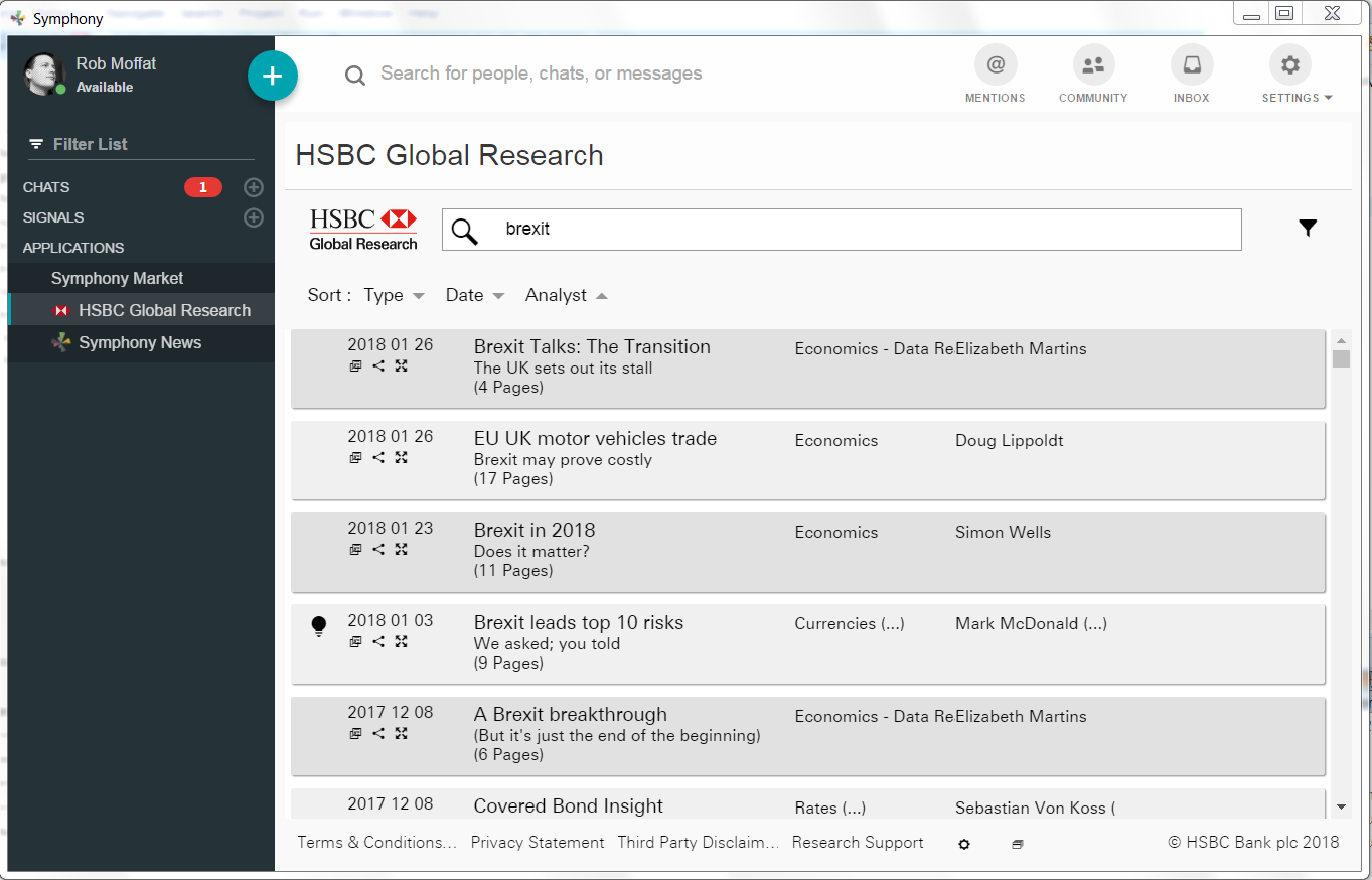 - Search HSBC’s entire Global Research catalog to find key reports inside Symphony Messaging