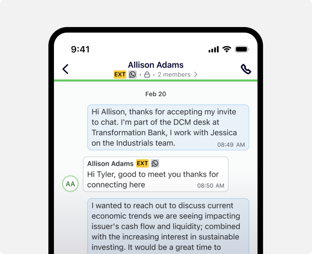 Symphony helps capture and retain WhatsApp messages, providing regulated users high-touch client communication with peace of mind.